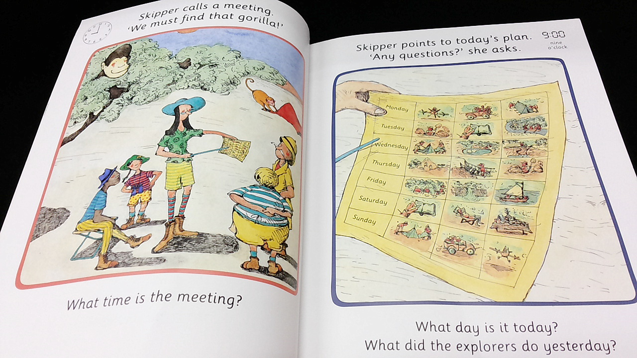 ผู้เขียนใช้การผจญภัยไปในสถานที่ต่างๆ มาสอนเรื่องเวลาไปในตัว พร้อมทั้งมีคำถามให้คิด โดยต้องใช้สายตามองหาและคิดหาคำตอบ